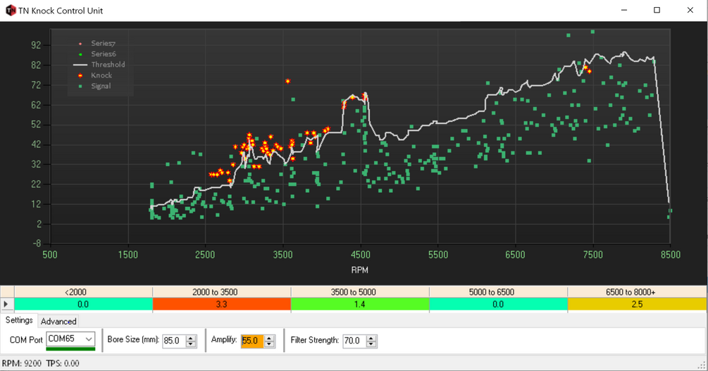 It will memorize the RPM and MAP (or TPS) conditions that this retard was needed, and slowly return timing to normal once no knock is detected. Max Timing retard is user configurable.